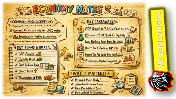 1) భారతదేశ GDP వృద్ధి అంచనా – FY26 & FY27 (భారతదేశ ఆర్థిక దృక్పథం) (బిజినెస్ స్టాండర్డ్ / ఫ్రీజాబ్అలర్ట్ – 12/01/2026)