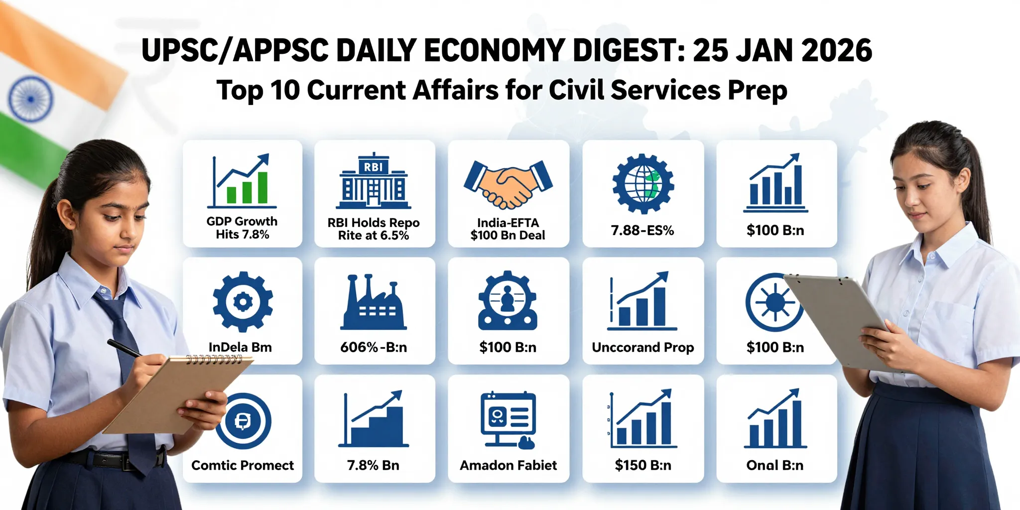 1. భారతదేశ GDP వృద్ధి Q3 FY26 లో 7.8% కి పెరిగింది (ది హిందూ, 25/01/2026)