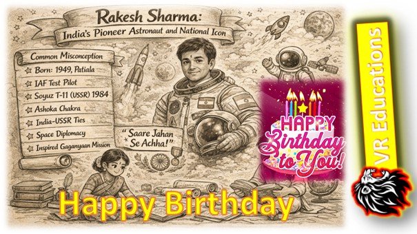 రాకేష్ శర్మ (జననం 13 జనవరి 1949) అంతరిక్షంలో ప్రయాణించిన తొలి భారతీయ పౌరుడిగా జరుపుకుంటారు, ఇది భారతదేశ శాస్త్రీయ మరియు సాంకేతిక ప్రయాణంలో ఒక చారిత్రాత్మక మైలురాయిని సూచిస్తుంది. శీతల యుద్ధ కాలంలో ఆధునిక, అంతరిక్ష సామర్థ్యం గల దేశంగా ఎదగాలనే భారతదేశం యొక్క ఆకాంక్షలను ఆయన ప్రయాణం ప్రతిబింబిస్తుంది. భారత వైమానిక దళం వింగ్ కమాండర్గా సేవలందిస్తున్న శర్మ 1984లో సోవియట్ అంతరిక్ష నౌక సోయుజ్ T-11 లో అంతరిక్షయానం చేయడం ప్రపంచ అంతరిక్ష పరిశోధనలో భారతదేశం యొక్క సహకారాన్ని సూచిస్తుంది మరియు భారతదేశం-USSR శాస్త్రీయ సంబంధాలను బలోపేతం చేసింది. ఆయన సాధించిన విజయం తరతరాలుగా భారతీయ శాస్త్రవేత్తలు, ఇంజనీర్లు మరియు విద్యార్థులకు స్ఫూర్తినిచ్చింది, అంతేకాకుండా అంతరిక్ష దౌత్యం మరియు రక్షణ సంసిద్ధత సందర్భంలో భారతదేశం యొక్క వ్యూహాత్మక మరియు సాంకేతిక సామర్థ్యాలను కూడా హైలైట్ చేసింది. శర్మ సహకారం శాస్త్రీయ మరియు నైతిక సందర్భాలలో ముఖ్యమైనది, ధైర్యం, క్రమశిక్షణ మరియు జాతీయ సేవ పట్ల అంకితభావాన్ని ఉదాహరణగా చూపిస్తుంది.